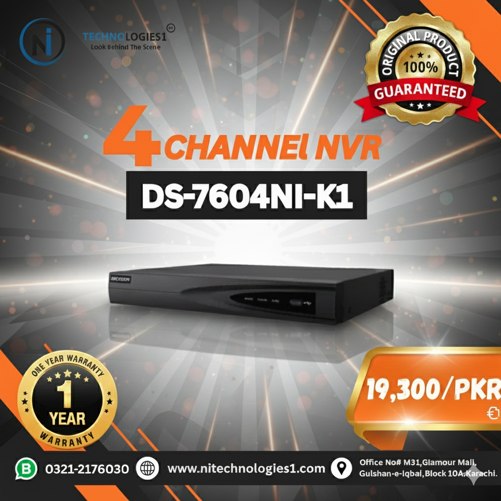 Hikvision DS-7604NI-K1 4-Channel 4K NVR with HDMI.VGA output - 19,300PKR (1Year Warranty)