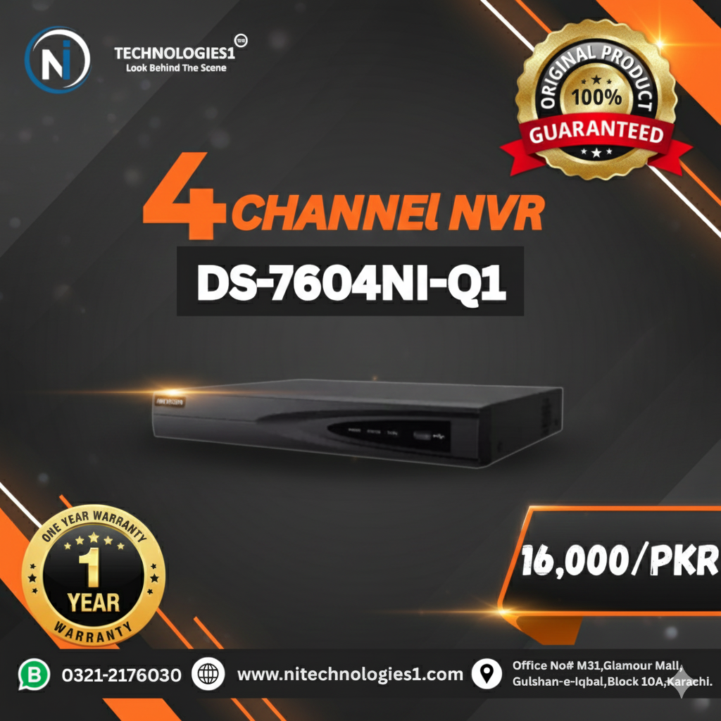 Hikvision DS-7604NI-Q1 4-Channel 4K NVR with HDMI/VGA output - 16,000PKR (1Year Warranty)