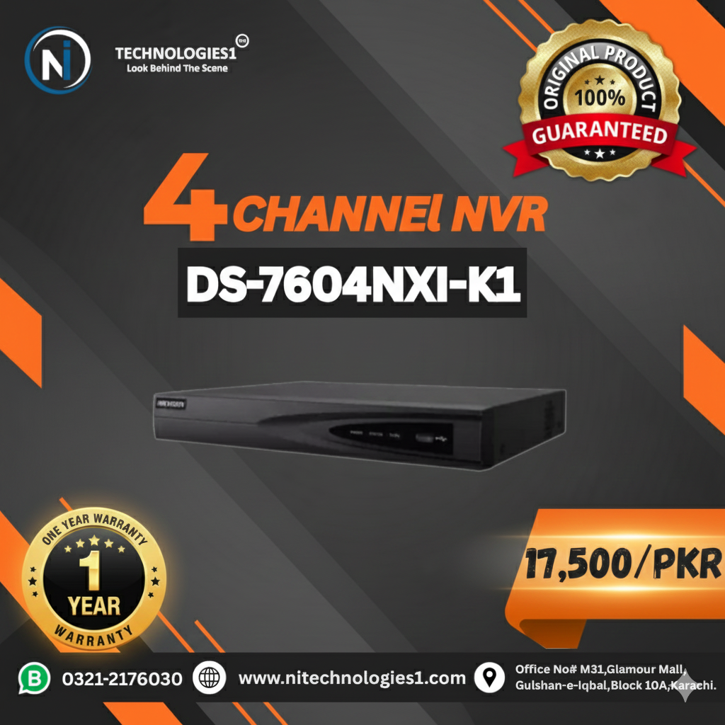 Hikvision DS-7604NXI-K1 4-Channel 4K NVR with HDMI/VGA output - 17,500PKR (1Year Warranty)