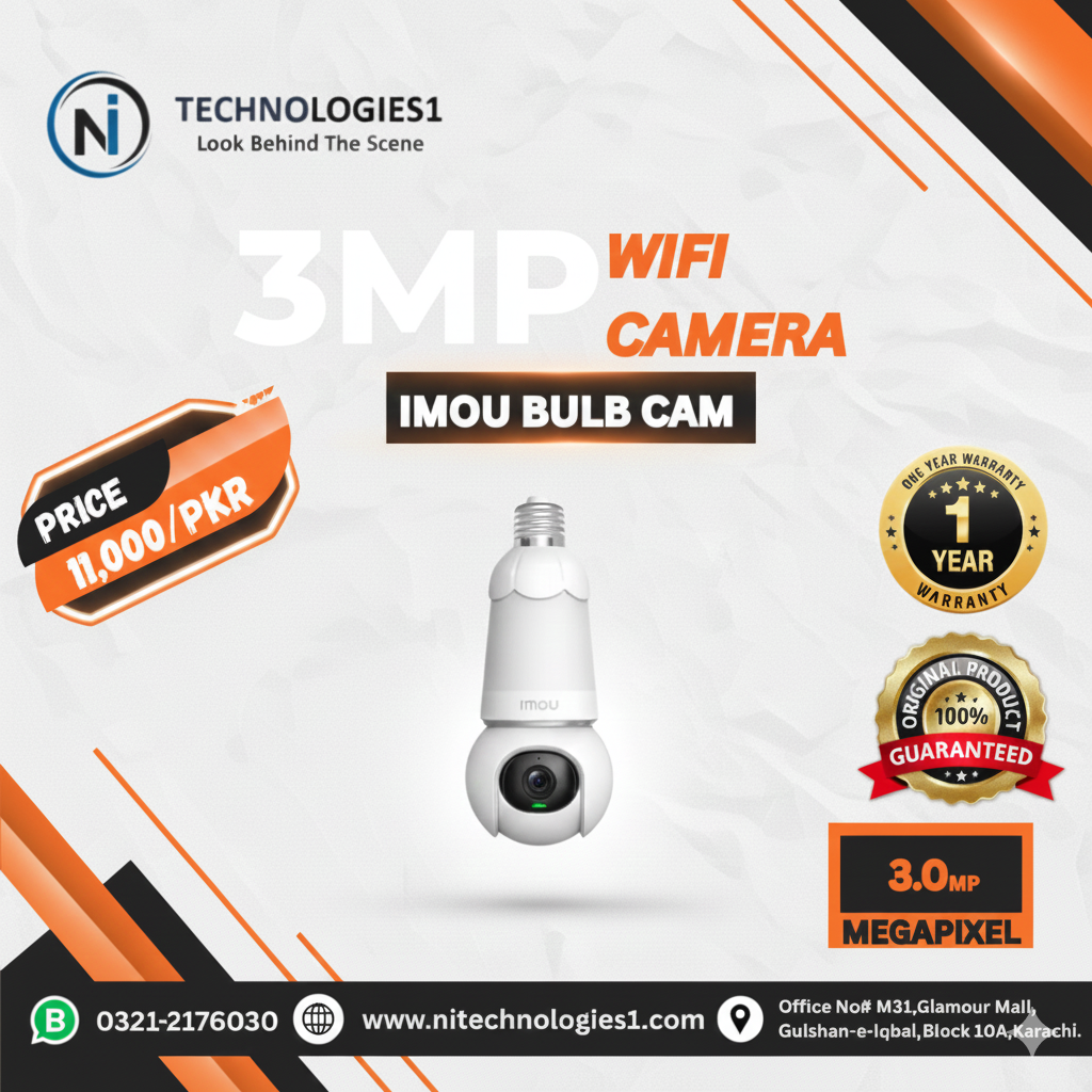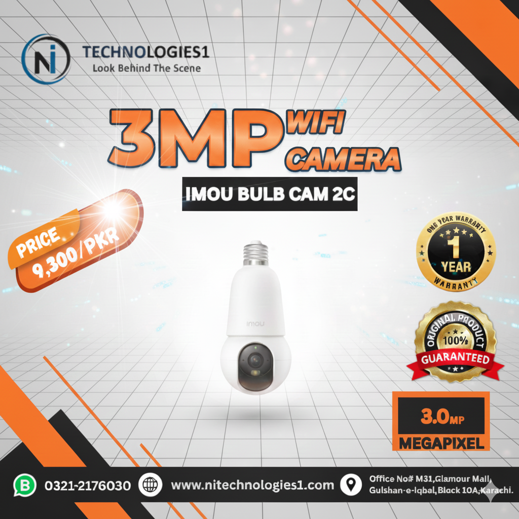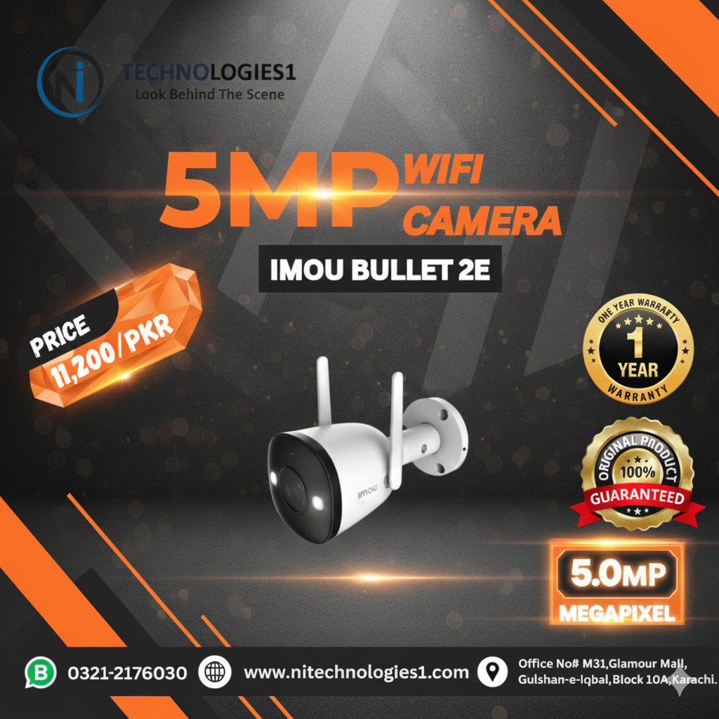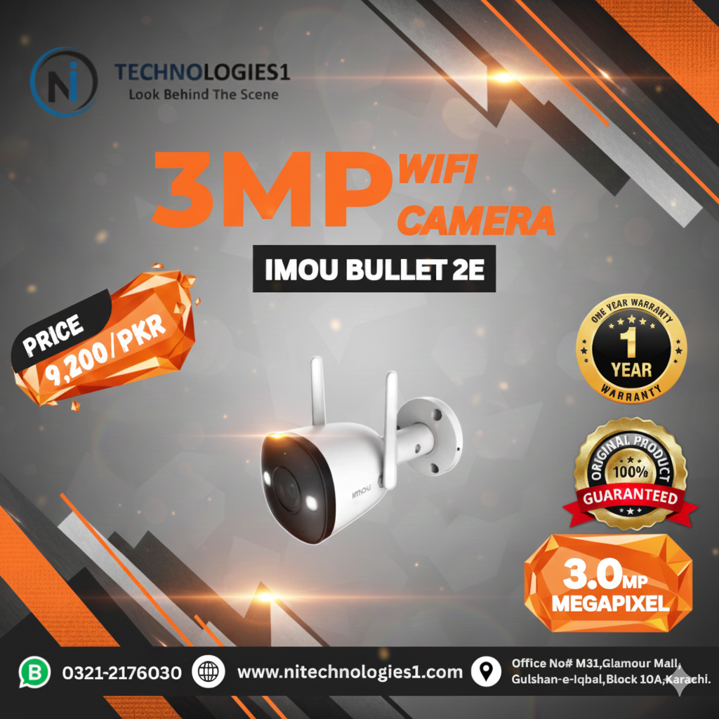 WIFI CAMERAS “Easy-to-Install WiFi Security Camera” IMOU 2MP Ranger 2 WiFi indoor & outdoor security camera with pan and tilt smart home - 6300/PKR (1Year Warranty) Buy Now IMOU 3MP Ranger 2 WiFi indoor & outdoor security camera with pan and tilt smart home - 7500/PKR (1Year Warranty) Buy Now IMOU 5MP Ranger 2 WiFi indoor & outdoor security camera with pan and tilt smart home - 9500/PKR (1Year Warranty) Buy Now IMOU 3MP BULB CAM 2C WiFi indoor & outdoor security camera with pan and tilt smart home - 9300/PKR (1Year Warranty) Buy Now IMOU 3MP BULB CAM WIFI indoor & outdoor security camera with pan and tilt smart home - 11,000/PKR (1Year Warranty) Buy Now IMOU 5MP BULB CAM WiFi indoor & outdoor security camera with pan and tilt smart home - 14,000/PKR (1 Year Warranty) Buy Now IMOU 3MP Bullet 2E WiFi indoor & outdoor security camera with pan and tilt smart home - 9200/PKR (1 Year Warranty) Buy Now IMOU 5MP Bullet 2E WiFi indoor & outdoor security camera with pan and tilt smart home - 11,200/PKR (1 Year Warranty) Buy Now IMOU 3MP Cruiser Single Lens WiFi outdoor Smart security Camera - 13,000/PKR (1 Year Warranty) Buy Now IMOU 5MP Cruiser Single Lens WiFi outdoor Smart security Camera - 14,200/PKR (1 Year Warranty) Buy Now